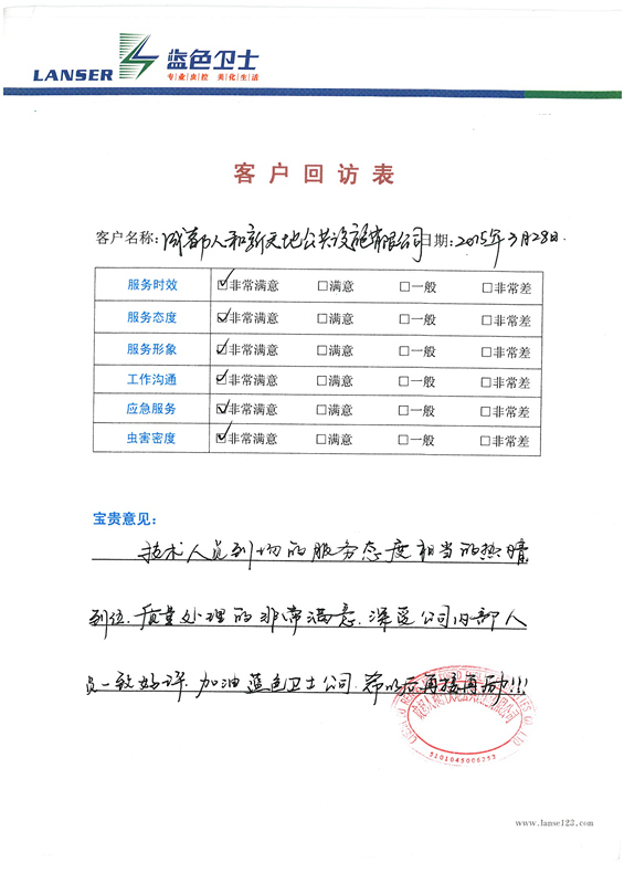 通過合作,對四害的消殺控制的很好,符合項目品質要求!